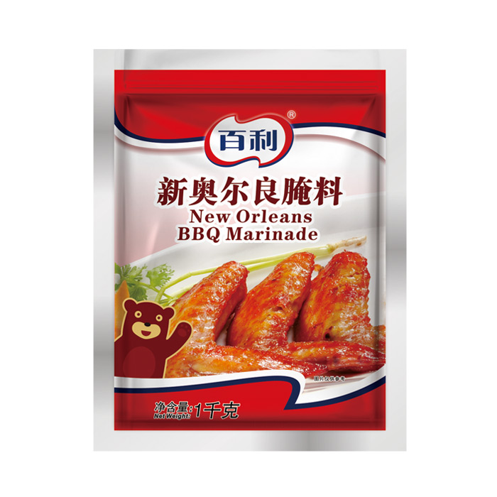 粉类,有混合香辛料的香气,具有浓郁的甜、香、辣的新奥尔良风味,用于肉禽类的腌制,并使之入味,方便厨师的操作。