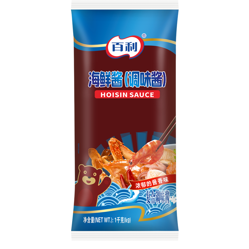以翻晒发酵的面豉为主要原料,酱体暗红细滑,酱香味浓郁,原汁原味。海鲜酱能抑腥除膻,微甜略酸,可以直接涂抹食用,是烹制海鲜的理想调味酱,亦可用于生鲜肉类的烹饪调味。